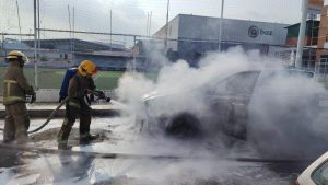 Juan Hernández / Diario de Chiapas. Tuxtla Gutiérrez, Chiapas.— Durante la tarde de este jueves, una camioneta particular quedó reducida a pérdida total tras incendiarse presuntamente a causa de un