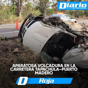 • Un lesionado en el accidente ocurrido la tarde del miércoles en la carretera Tapachula–Puerto Madero Darinel González Una aparatosa volcadura registrada la tarde del miércoles sobre la carretera Tapachula–Puerto