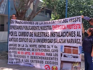 Trabajadores se manifestaron ayer en contra de un traslado de oficinas que atenta contra sus derechos, pues pretenden llevarlos a un lugar que está en peores condiciones Marco Alvarado /