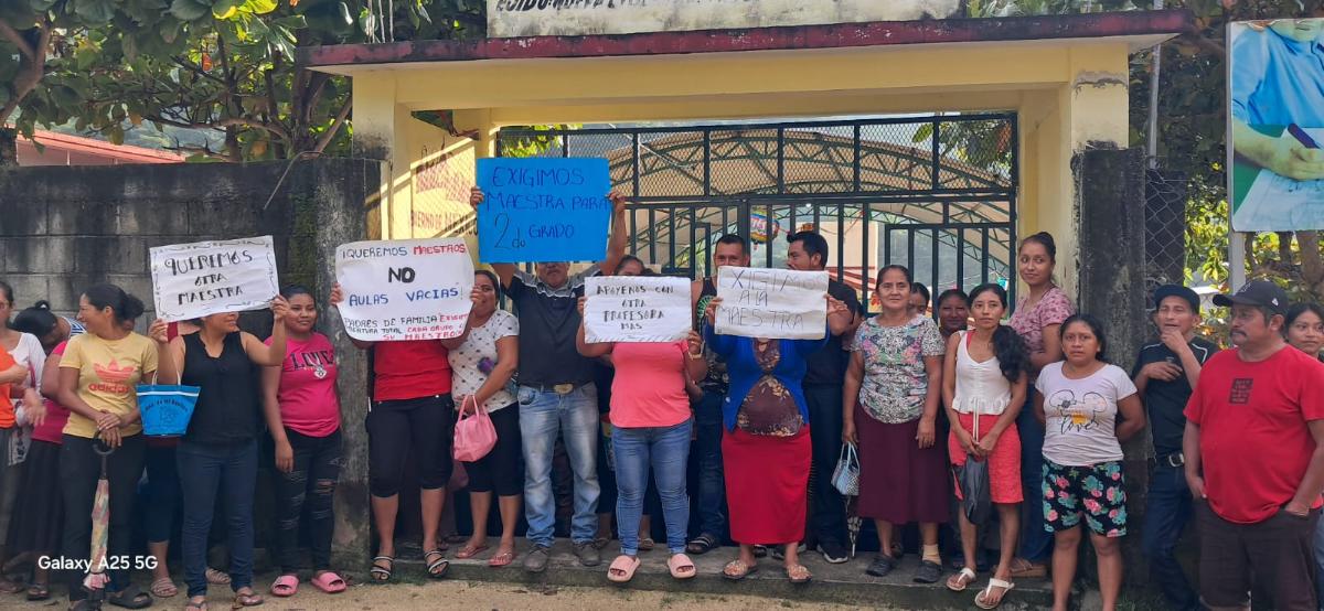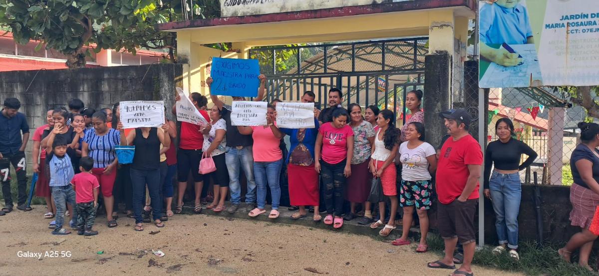 Cansados de la falta de cumplimiento por parte de la Secretaría de Educación, padres de familia del jardín de niñas y niños «María Rosaura Zapata», del ejido Nueva Libertad, en Acacoyagua, protestaron este lunes para exigir el regreso de una maestra que falta en este pequeño plantel educativo.