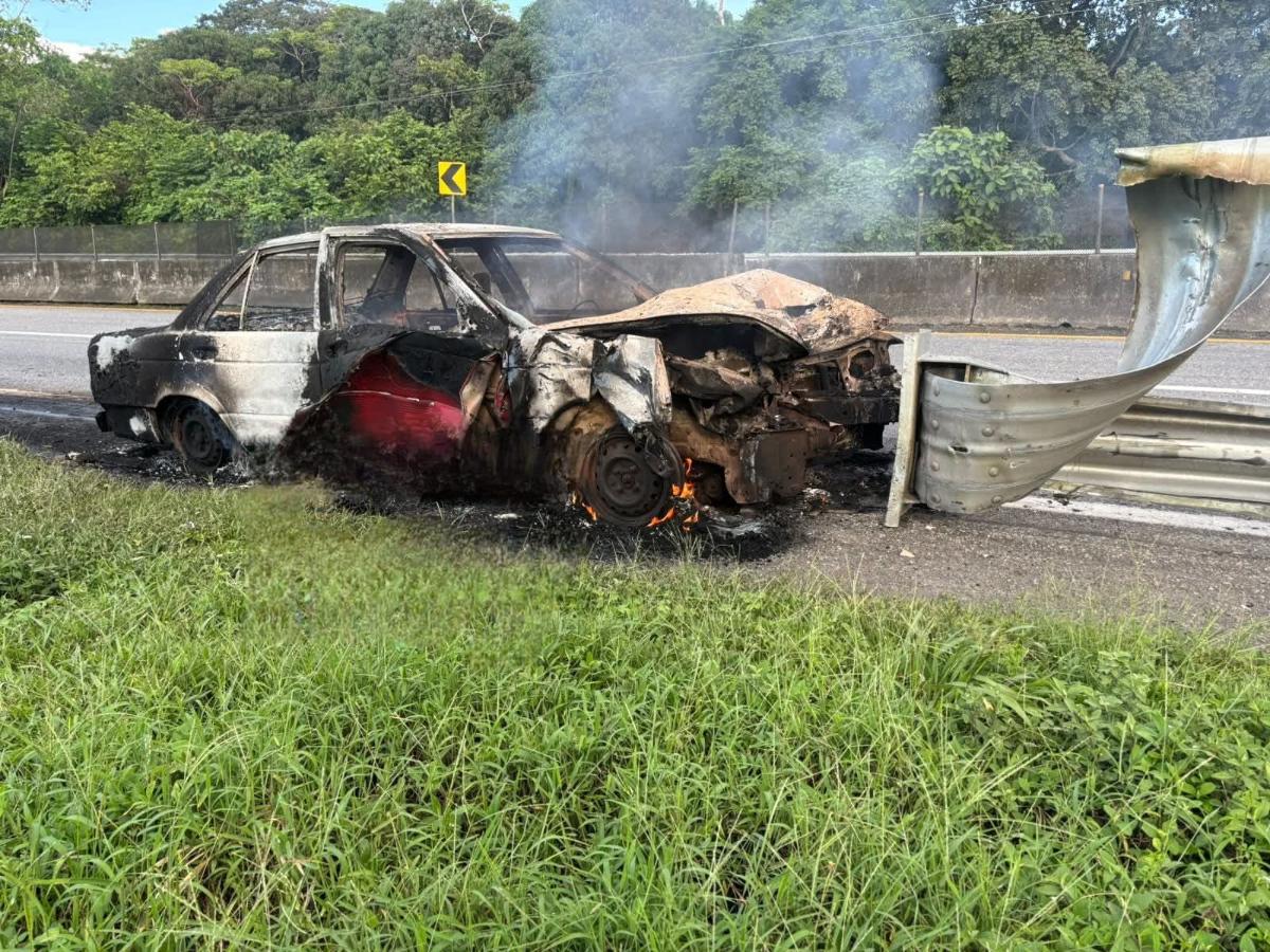 De acuerdo con los reportes preliminares, el conductor de un Nissan Tsuru color rojo circulaba presuntamente a exceso de velocidad cuando perdió el control del volante, impactándose contra la barra de contención, la cual fue arrancada y arrastrada por más de 120 metros. Tras el fuerte choque, el automóvil terminó envuelto en llamas. Testigos relataron que el conductor logró salir por su propio pie, con el cabello y parte de la ropa quemados, antes de abandonar la escena.
