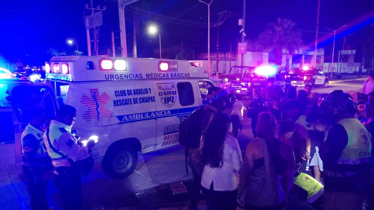 La noche de este lunes se registró un accidente vehicular en la 4ª Avenida Sur Prolongación y Calzada Las Palmas, frente a una conocida plaza comercial de Tapachula, que dejó como saldo una persona lesionada y daños materiales.