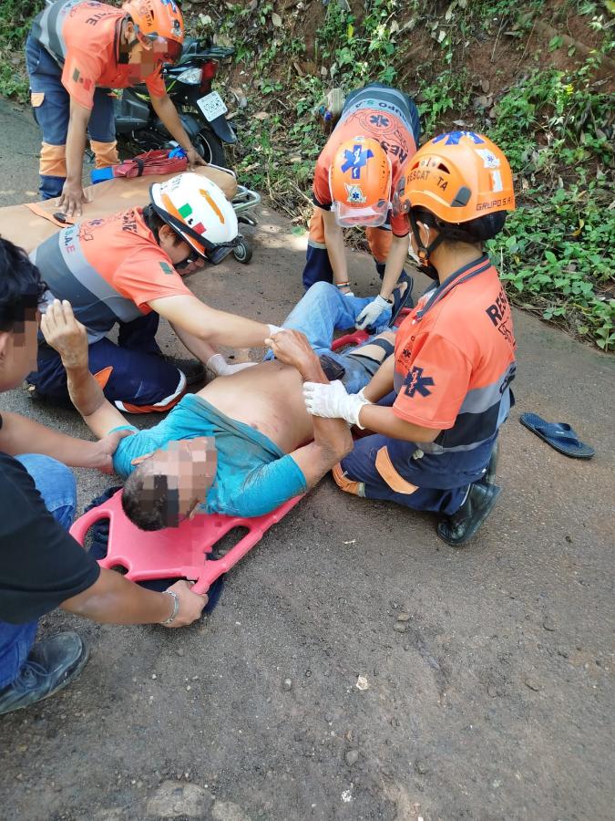 Tras la evaluación inicial, el hombre presentaba una herida abierta y posible fractura en la rodilla derecha, además de lesiones abrasivas y dolor en la zona de la parrilla costal derecha. En el lugar se le realizaron maniobras de inmovilización y curación para estabilizarlo.