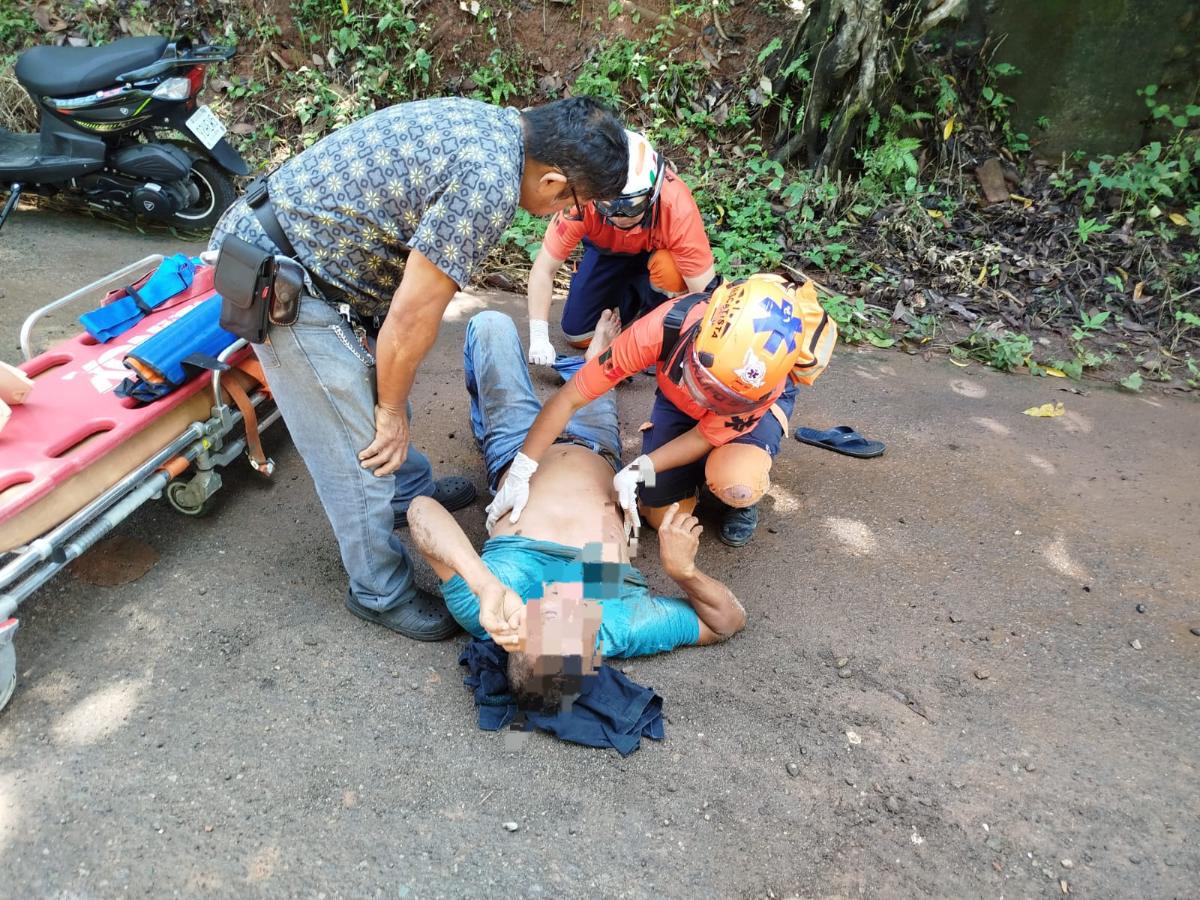 De acuerdo con versiones recabadas en el sitio, el motociclista circulaba por la zona cuando, al tomar una curva, perdió el control de su unidad y derrapó, provocando la caída.