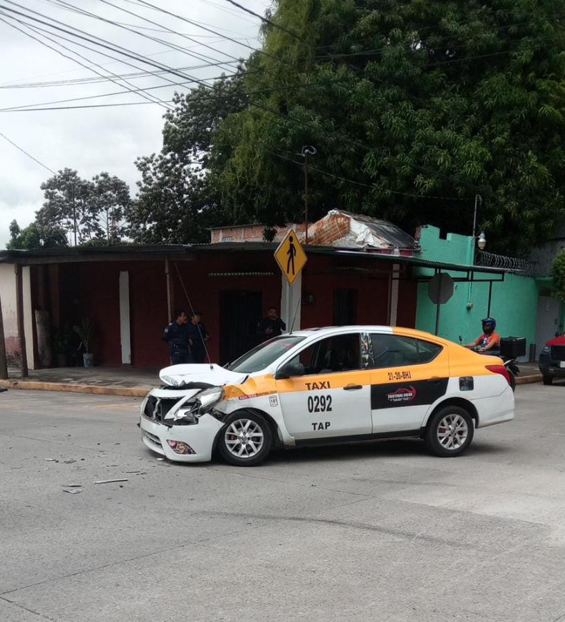 De acuerdo con los primeros reportes, el conductor del taxi Nissan Versa, con número económico 0282, circulaba sobre la 4ª Calle Oriente cuando, al intentar incorporarse a la 5ª Privada Sur, colisionó con un camión tipo Freightliner perteneciente a una reconocida empresa purificadora de agua.