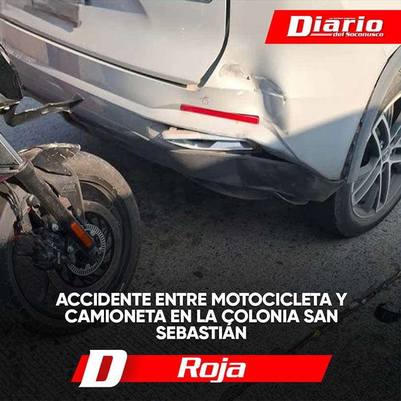 Accidente entre motocicleta y camioneta en la colonia San Sebastián