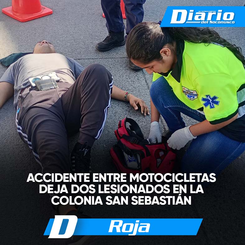 Dos personas lesionadas y cuantiosos daños materiales fue el saldo de un accidente de tránsito registrado en el cruce de la 12ª Avenida Sur y 20ª Calle Poniente, en la colonia San Sebastián, donde se vieron involucrados dos motocicletas.