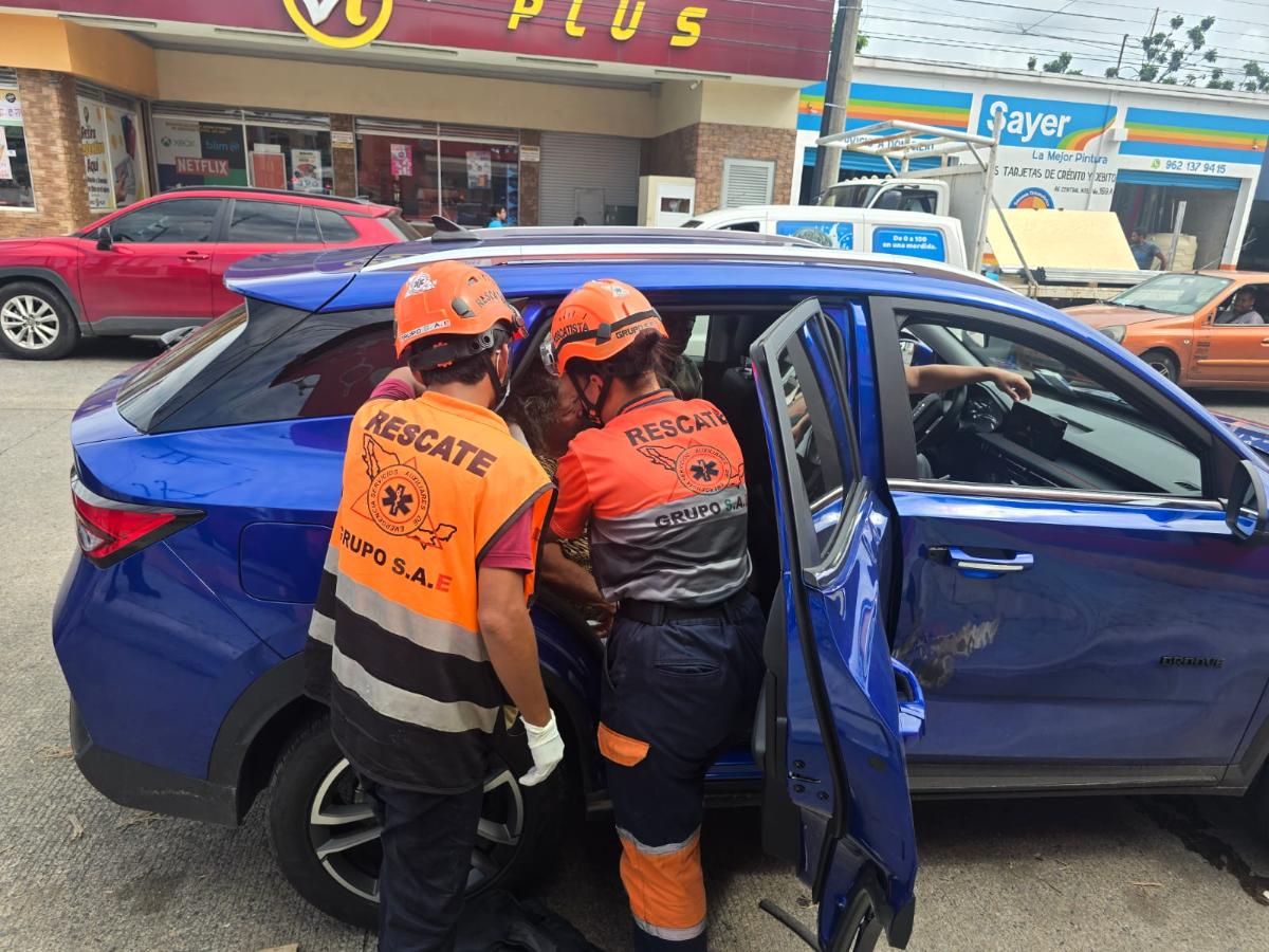 Al lugar acudió de forma inmediata la unidad UR-04 del Grupo SAE, con tres elementos a bordo. Los paramédicos localizaron a una femenina identificada como Aurora “N”, de 25 años de edad, quien se encontraba sentada dentro de la camioneta particular al momento del arribo de los socorristas. Durante la valoración médica, la paciente presentaba una herida de aproximadamente 1 cm en la región parietal del cráneo, así como algia cervical, dolor en la zona del omóplato y signos vitales alterados. El personal procedió a realizar curación, estabilización y monitoreo de signos vitales, para posteriormente trasladarla a un hospital cercano donde recibiría atención médica especializada.