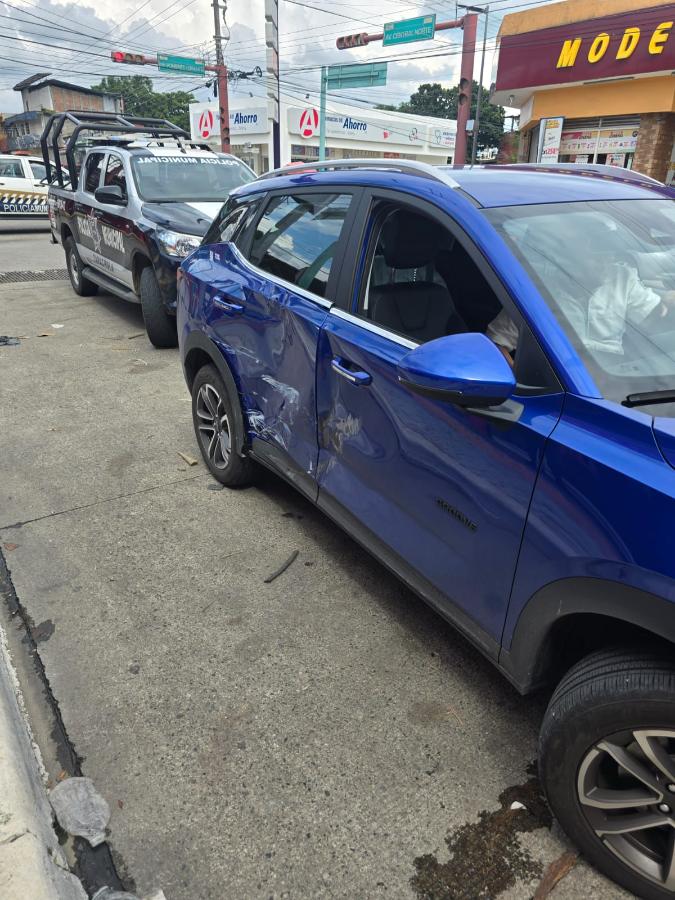 Un accidente de tránsito entre una patrulla de la Secretaría de Seguridad y Protección Ciudadana Municipal (SSPyPCM) y una camioneta particular dejó como saldo una persona lesionada y daños materiales. Los hechos ocurrieron alrededor de las 14:20 horas del día de ayer en el cruce semaforizado de la central avenida norte y la 25ª calle oriente, en esta ciudad.