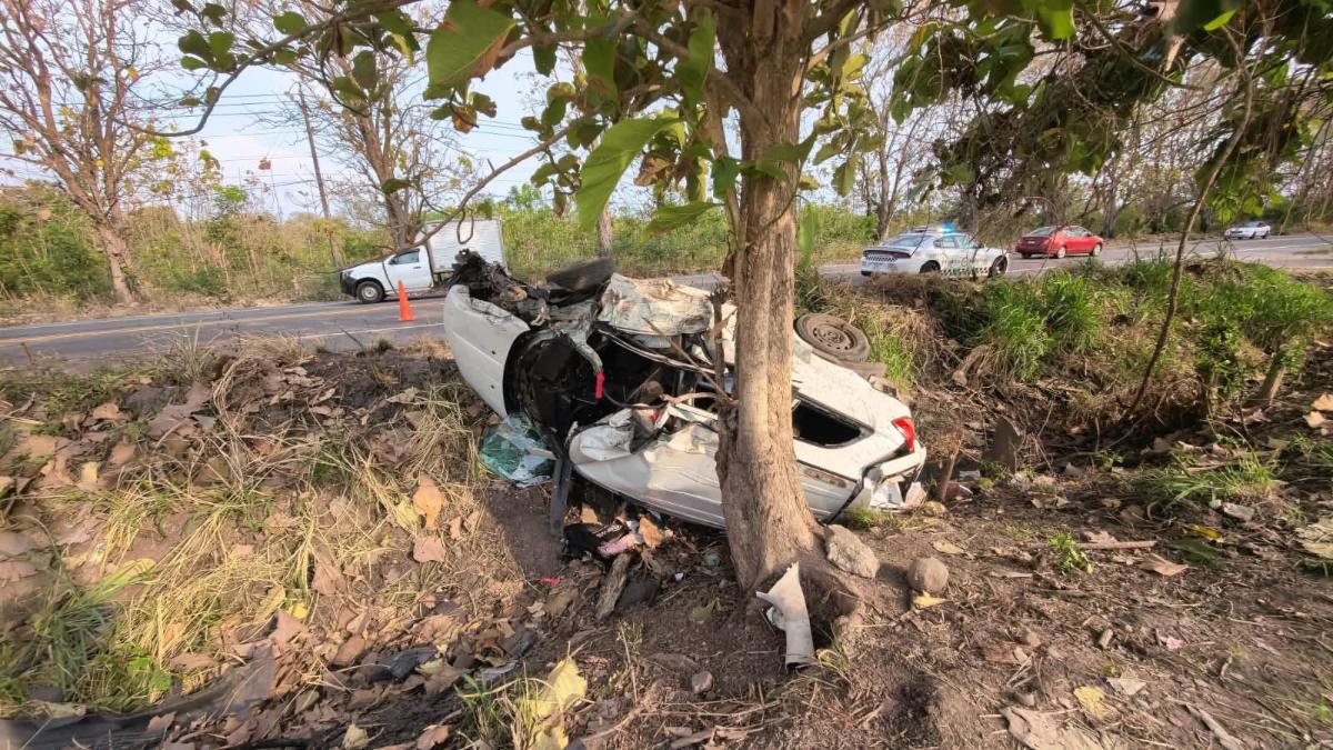 Esto provocó que el conductor perdiera el control, saliéndose de la carretera y volcando hasta impactarse contra un árbol.