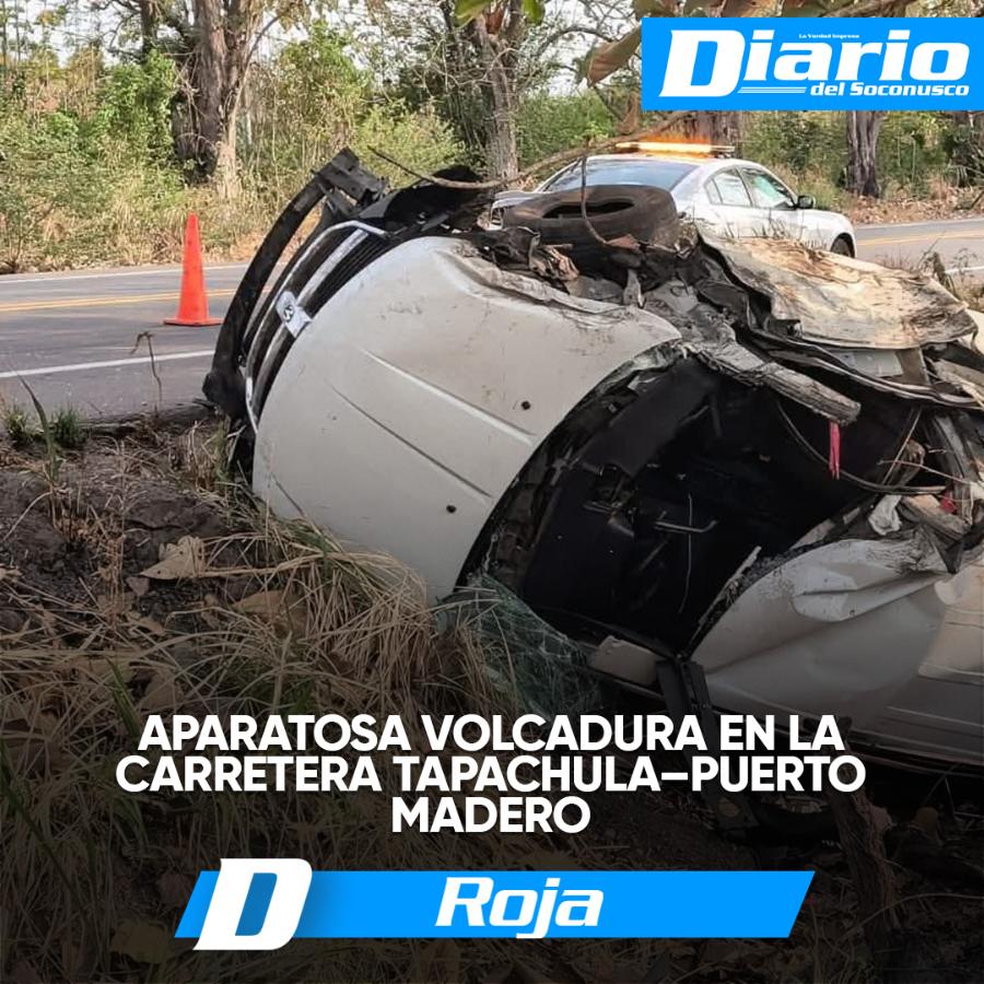 Una aparatosa volcadura registrada la tarde del miércoles sobre la carretera Tapachula–Puerto Madero, a la altura del kilómetro 22, dejó como saldo una persona lesionada y cuantiosos daños materiales.
