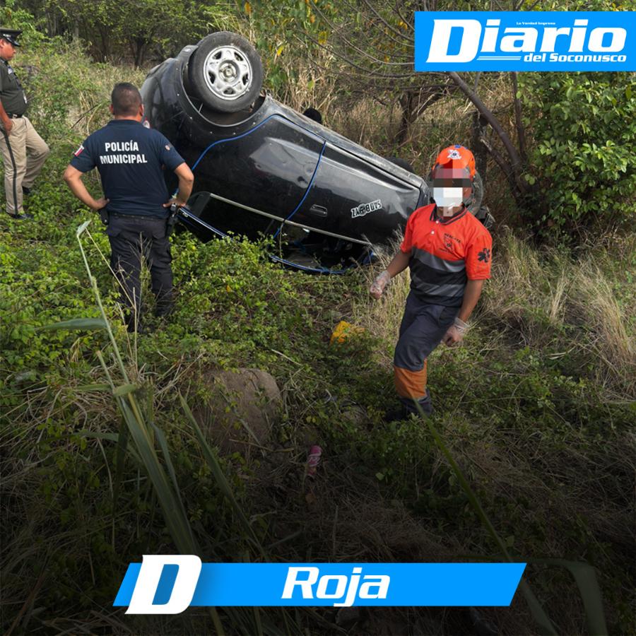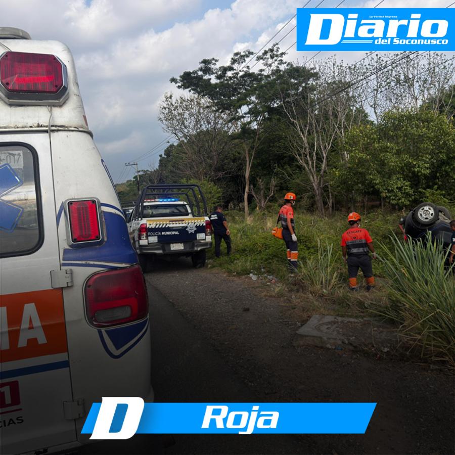 Un aparatoso accidente vehicular se registró sobre la carretera Viva México–Tapachula, a la altura de la entrada a la colonia San Agustín, donde un automóvil terminó volcado fuera de la vía.