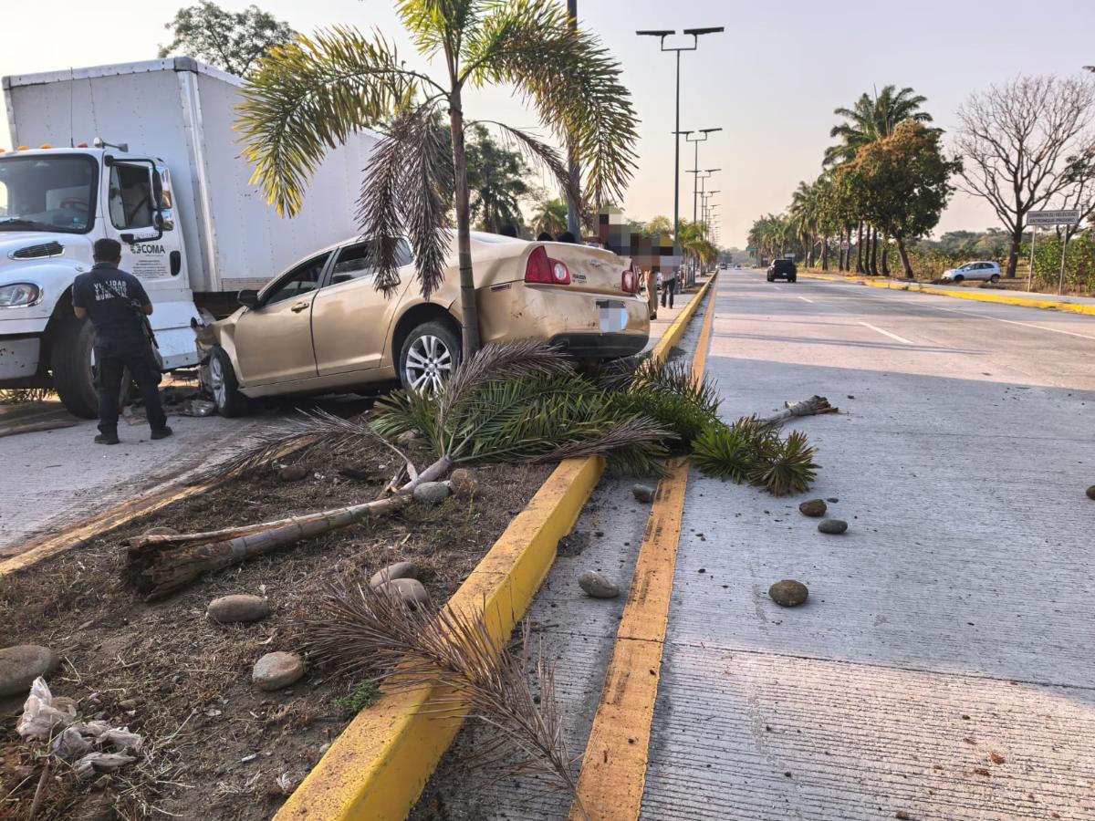 Un aparatoso accidente se registró sobre el Libramiento Sur Poniente, a la altura del entronque que conduce al camino viejo a Mazatán, donde un vehículo particular terminó impactándose contra un camión de carga y dejó cuantiosos daños materiales.