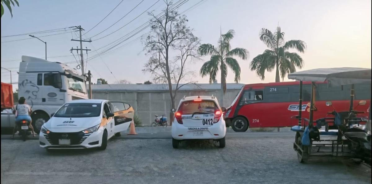 El taxi, un Nissan Versa color blanco con franjas amarillas y número económico 0899, resultó con cuantiosos daños materiales en la parte trasera, mientras que el autobús presentó afectaciones en la parte frontal del lado izquierdo.