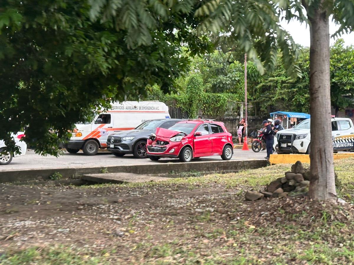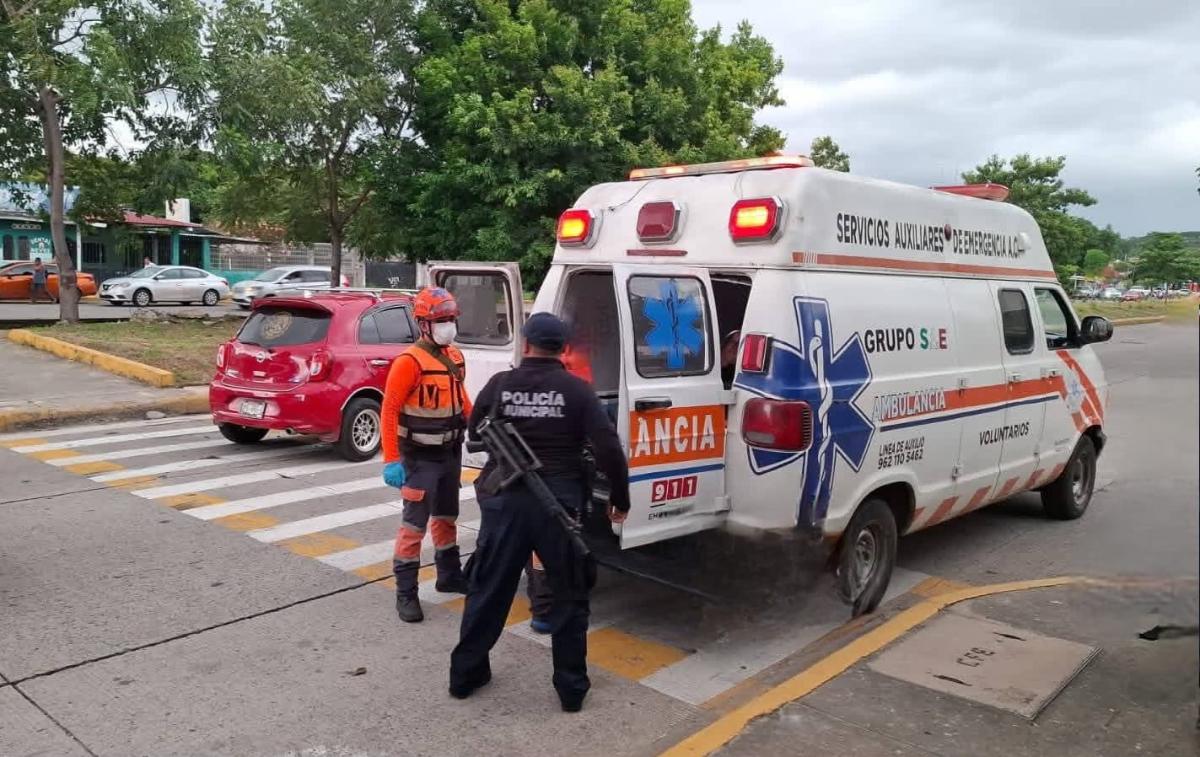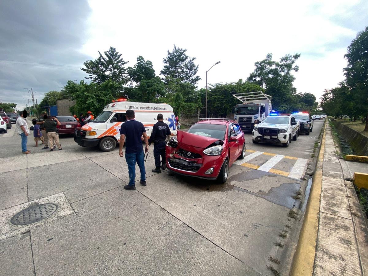 Aparatoso choque en la 9ª Avenida Sur de Tapachula deja un lesionado y severos daños materiales