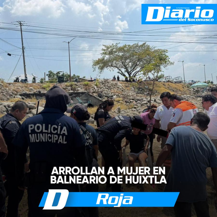 Una mujer resultó lesionada luego de ser arrollada por un triciclo en la bajada hacia el río de Huixtla, donde estos días duden cientos de visitantes por el descanso de Semana Santa.