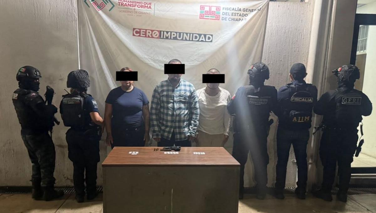 Posteriormente la FGE, inició las líneas de investigación y así logró la detención de dos presuntos responsables mismos que dijeron responder a los nombres de Luis N y Antonio N; los cuales están a disposición de las autoridades correspondientes. Cabe hacer mención que estos individuos fueron detenidos en Tapachula, a bordo de un automóvil tipo Bora, los acompañaba una fémina, llevaban narcóticos y armas.