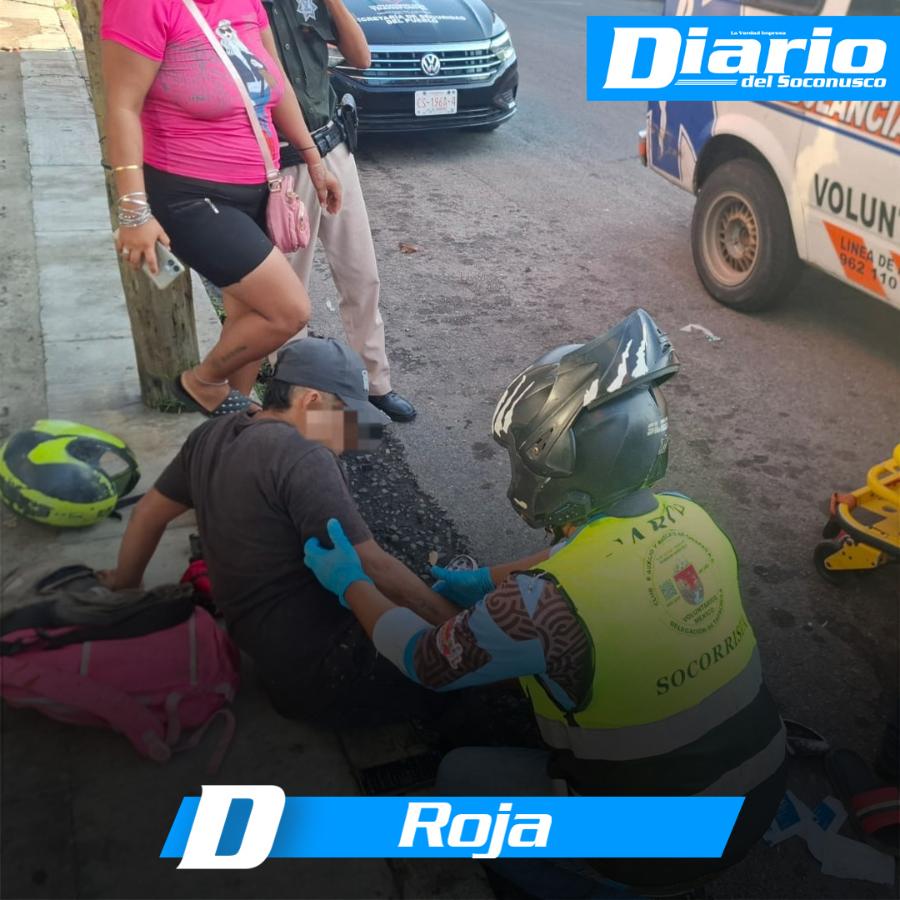 Paramédicos del Grupo SAE y del Grupo CARCH acudieron al sitio para brindar atención prehospitalaria. Uno de los lesionados, identificado como Francisco Javier N., de 44 años, presentaba una laceración de aproximadamente 3 a 4 centímetros en la pierna derecha y dolor intenso, por lo que recibió atención en el lugar.