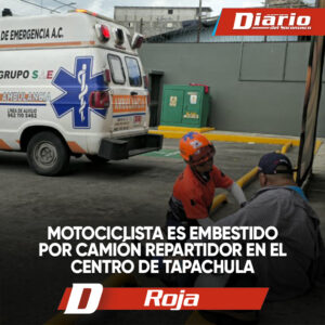 Motociclista es embestido por camión repartidor en el centro de Tapachula
