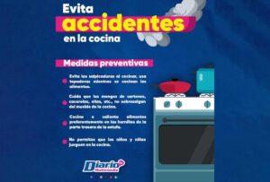 Medidas preventivas Evita las salpicaduras al cocinar, usa tapaderas mientras se cocinan los alimentos. Cuida que los mangos de sartenes, cacerolas, ollas, etc., no sobresalgan del mueble de la cocina.