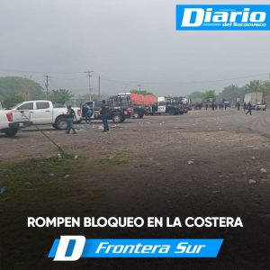 Amilcar García Corporaciones policiales desalojaron a un grupo de personas que mantenía un bloqueo sobre la carretera Villa Comaltitlán- Huixtla, en clamor de justicia para dar con el responsable de