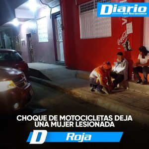 Darinel González / Corresponsal Diario del Soconusco Tapachula, Chiapas. Un accidente entre motocicletas registrado en la 16ª Avenida Sur y 2ª Privada Calle Poniente dejó como saldo a una mujer