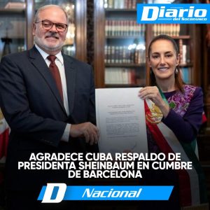 Barcelona, España.– El gobierno de Cuba expresó su agradecimiento a la presidenta de México, Claudia Sheinbaum, por el respaldo manifestado durante su participación en la reciente cumbre internacional celebrada en