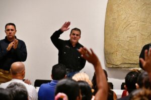 M de R En Tuxtla Gutiérrez, el gobernador Eduardo Ramírez Aguilar asistió a la asamblea con el sector transportista concesionado, donde anunció que el gobierno de la Nueva ERA brindará