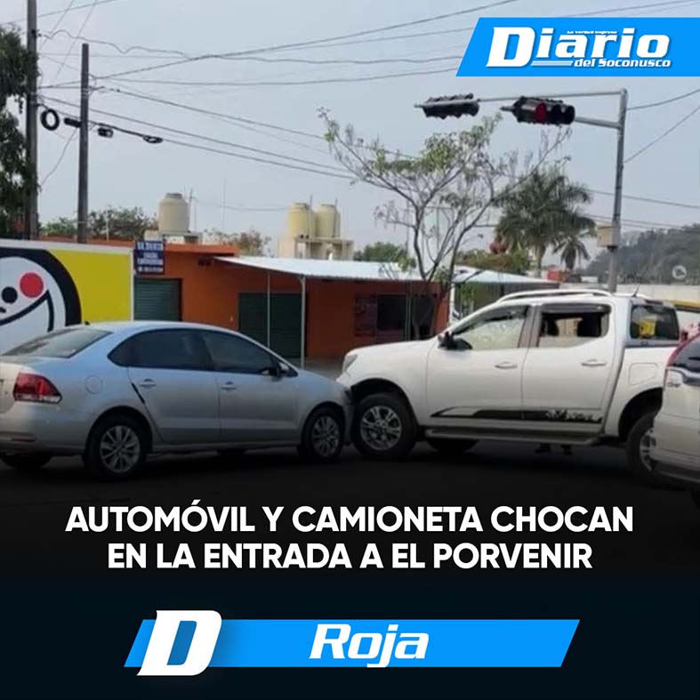 Un pequeño choque automovilístico se registró la mañana de este jueves en la carretera Tapachula–Viva México, a la altura de los semáforos ubicados en la entrada a la colonia El Porvenir, lo que generó tráfico intenso por algunos momentos.