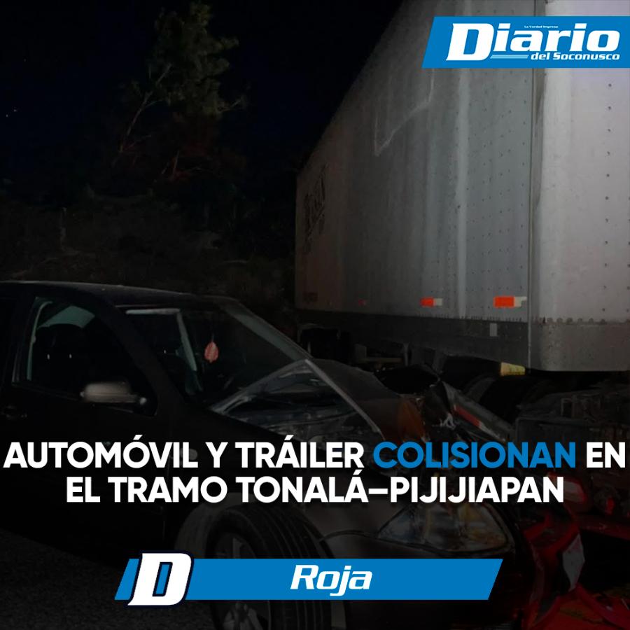 La noche del pasado jueves se registró un accidente vehicular sobre el tramo Tonalá–Pijijiapan, a la altura del ejido San Isidro, donde un automóvil Volkswagen tipo Jetta color café colisionó contra un tráiler blanco, provocando una fuerte movilización de cuerpos de emergencia.