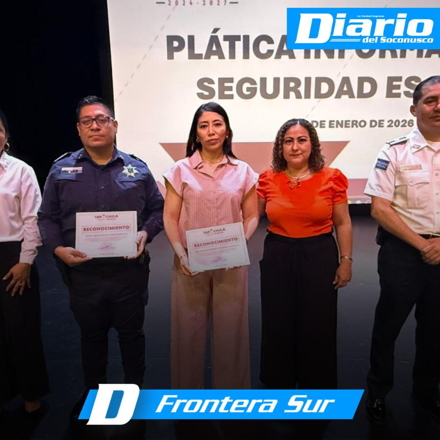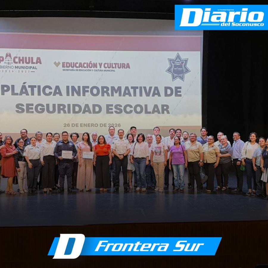 Las Secretarías de Educación y Cultura y Seguridad Pública y Protección Ciudadana Municipal, realizaron la Plática Informativa de Seguridad Escolar, dirigida a directivos y docentes de los niveles básico, medio superior y superior, en el Teatro de la Ciudad «Amparo Montes», como parte de la estrategia de acercamiento y diálogo con la población, impulsada por el presidente municipal de Tapachula, Yamil Melgar Bravo.