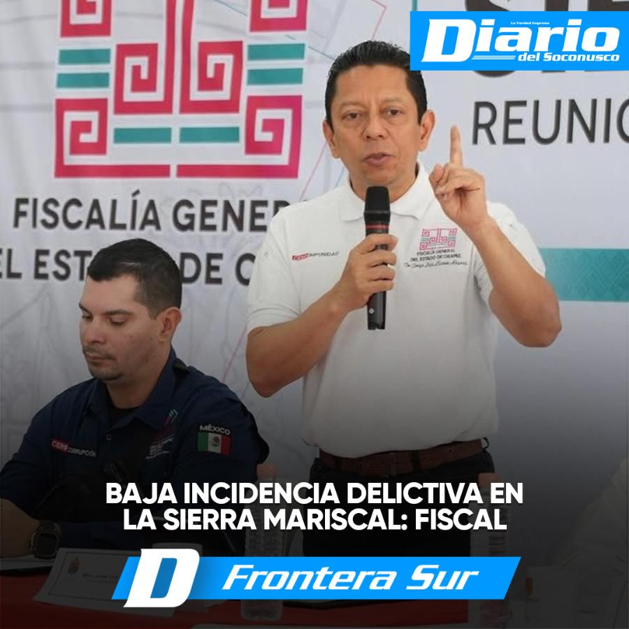 Durante la reunión “Sierra Segura”, realizada en el municipio de Motozintla, el fiscal general del estado, Jorge Luis Llaven Abarca, informó que en la región Sierra Mariscal se registró una reducción del 85 por ciento en la incidencia delictiva general durante enero de 2026, así como cero carpetas de investigación por delitos de alto impacto, en comparación con el mismo mes de 2025.
