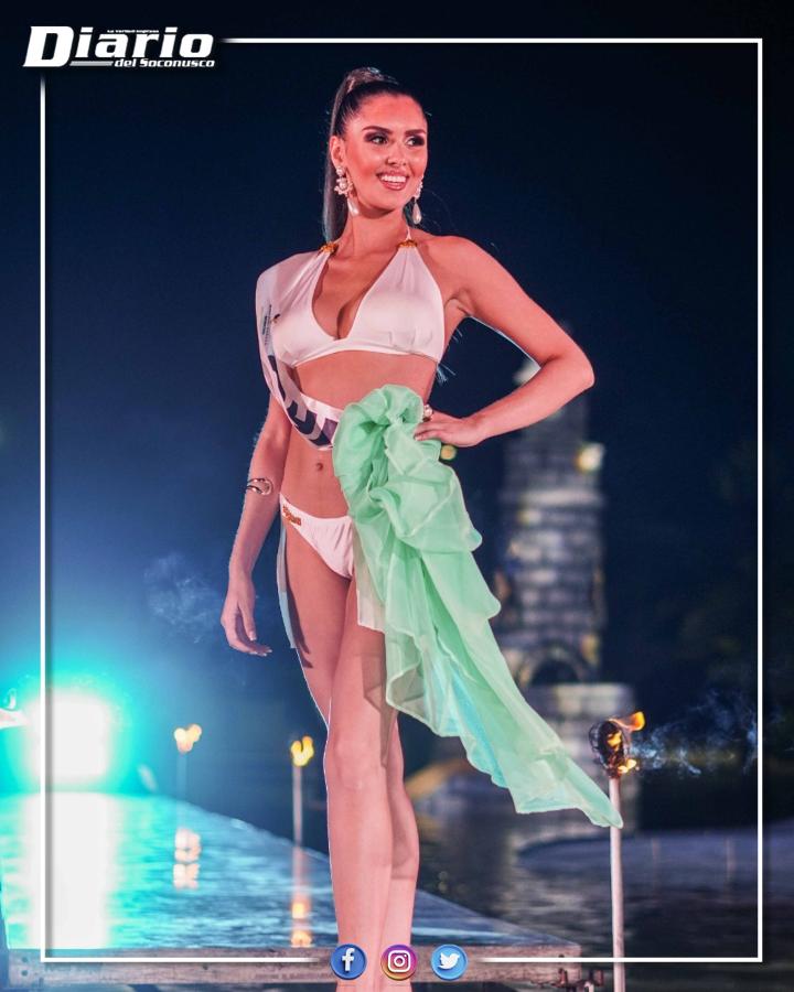 El escenario fue el parque acuático Lum Ha, donde las concursantes desfilaron sobre una pista instalada sobre el agua, modelando sus respectivos trajes de baño y mostrando seguridad, porte y desenvolvimiento ante el público y el jurado.