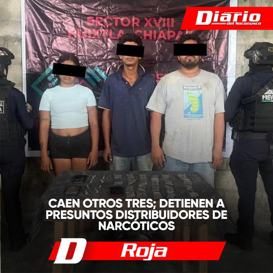 Dentro de los operativos que se vienen registrando en diversos sectores de este municipio, fuerzas de seguridad, lograron la detención de tres perdonas más que presuntamente se han venido dedicando a la distribución de estupefacientes.