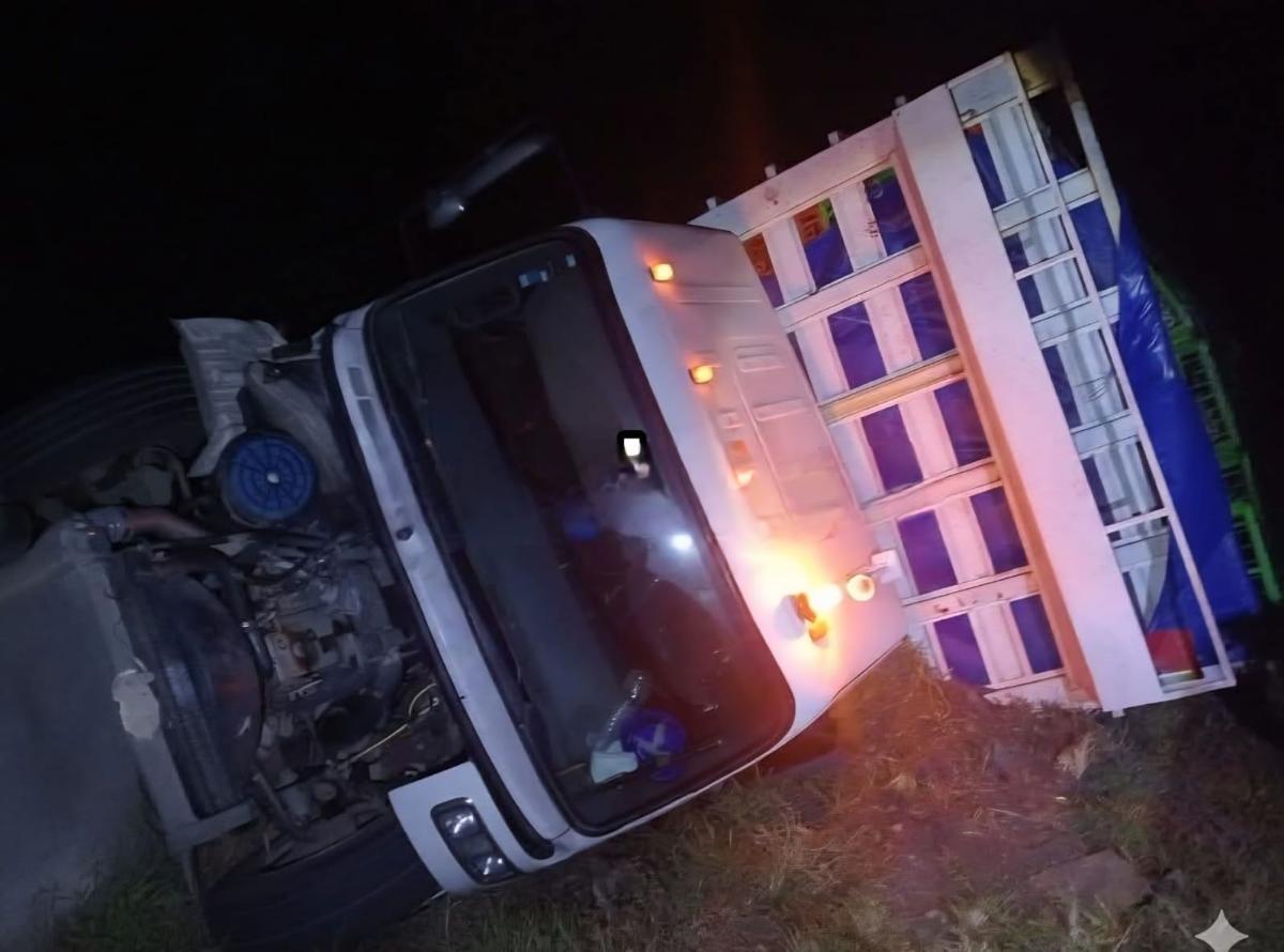 De acuerdo con los primeros reportes, un camión tipo Torton marca Freightliner, color blanco, que transportaba decenas de rejas de pollo, habría sufrido una presunta falla mecánica alrededor de la 1:00 de la madrugada, lo que provocó que el conductor perdiera el control de la unidad.