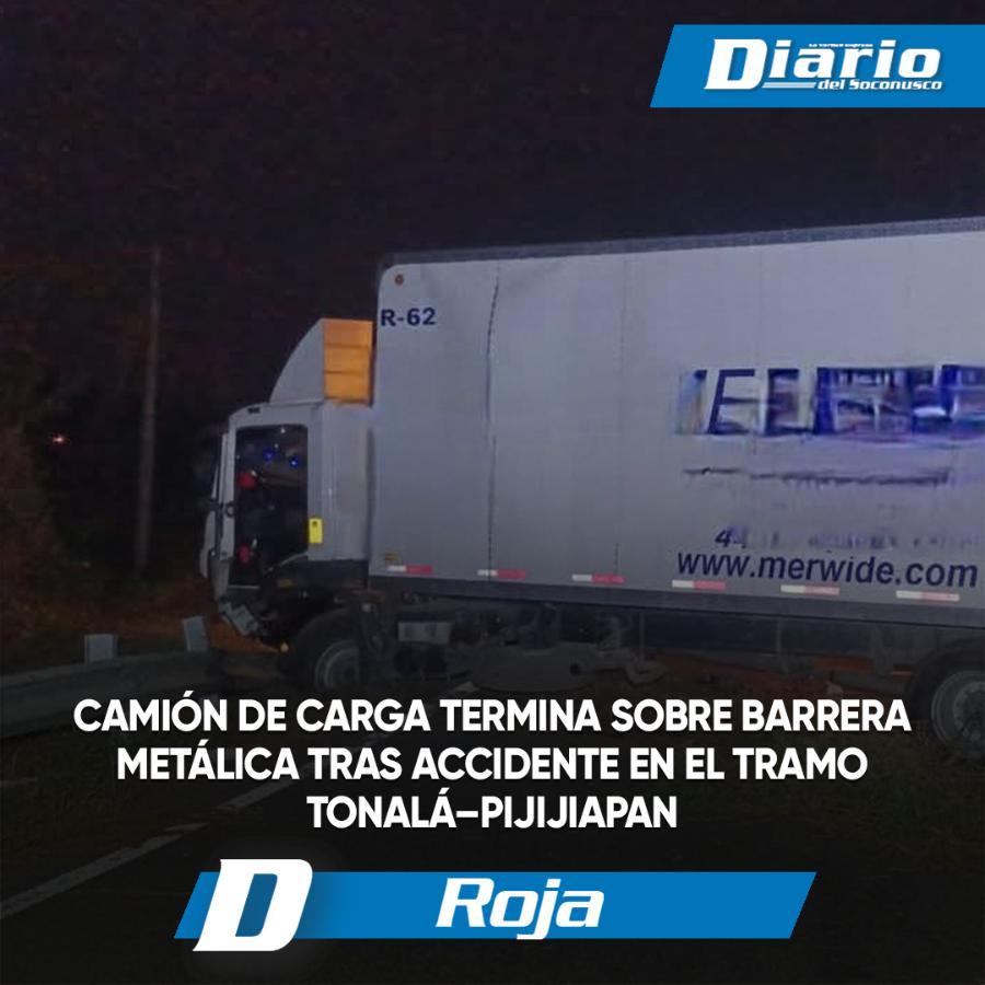 El incidente provocó que el conductor perdiera el control del vehículo, proyectándose hacia el costado de la vía. La pesada unidad terminó montada sobre la barrera metálica de contención, la cual evitó que cayera a un desnivel mayor, reduciendo así el riesgo de consecuencias más graves.