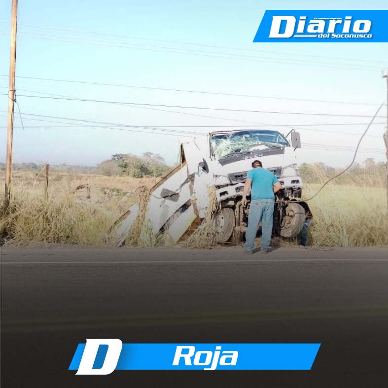 La mañana de este miércoles un vehículo Isuzu con caja seca, de color blanco, terminó fuera de la carpeta asfáltica a un costado de la carretera del Libramiento Sur, a la altura del puente Coatán, sin que se reportaran personas lesionadas.