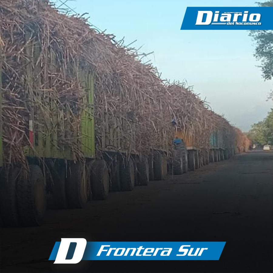 Debido al elevado tonelaje de caña de azúcar que se registra durante la Zafra 2025–2026 en Huixtla, se han generado extensas filas de camiones cargados con la vara dulce que se trasladan desde las parcelas hacia la molienda, lo que representa un grave riesgo para conductores.