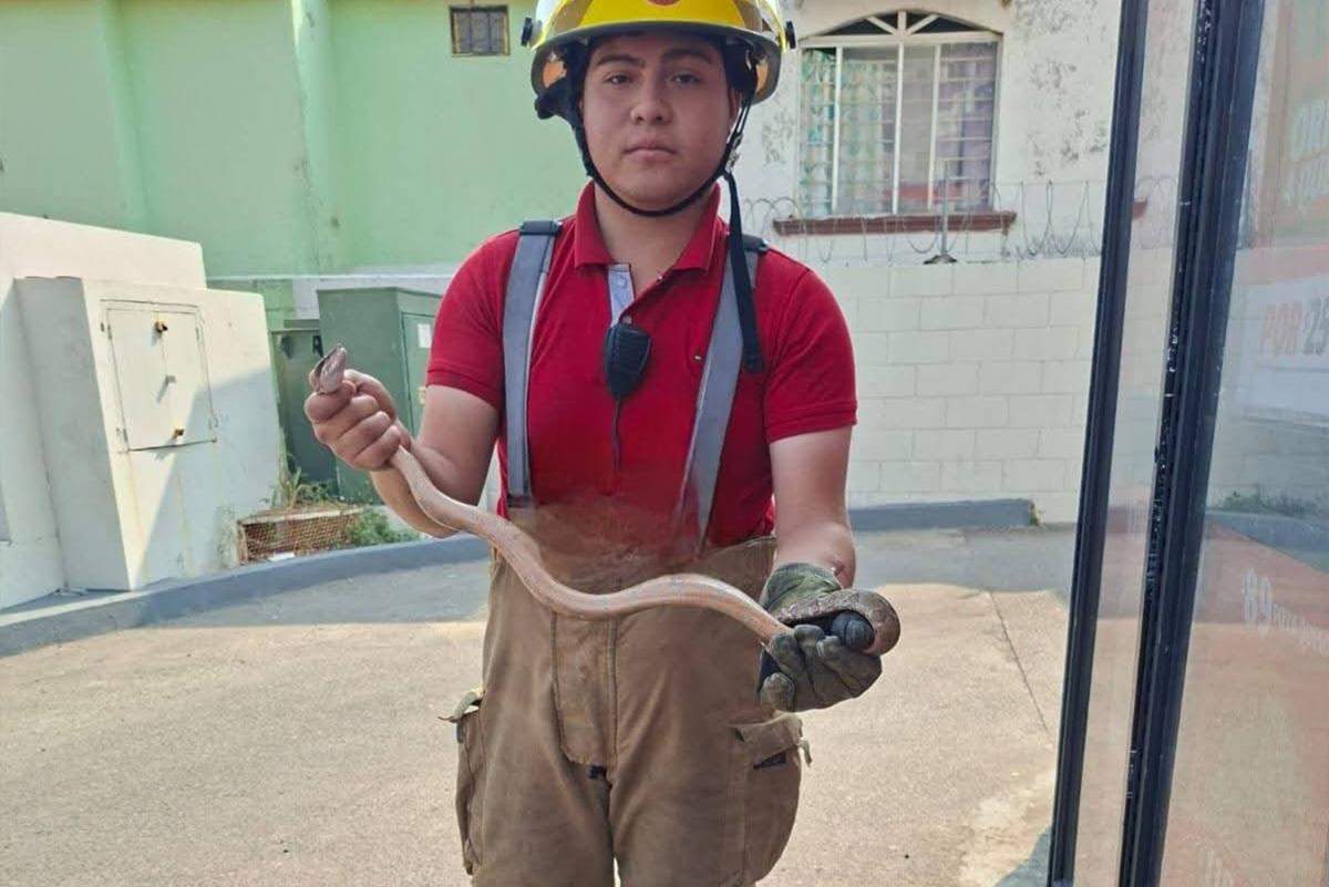 Tras varios minutos de labores, la serpiente fue asegurada sin que se registraran personas lesionadas.