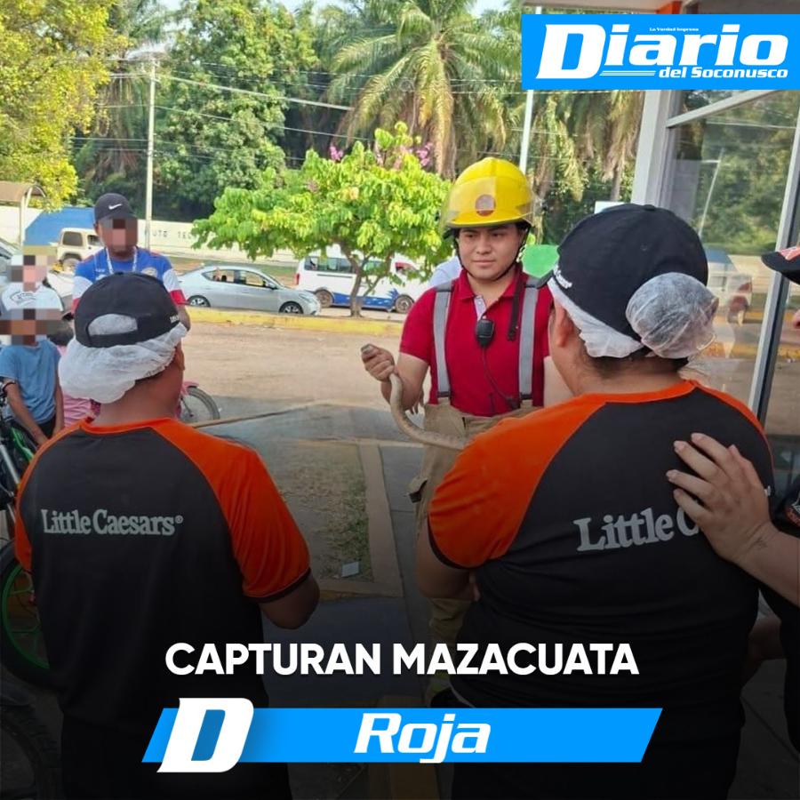 Una culebra “mazacuata” de aproximadamente un metro de longitud, fue localizada la tarde de este miércoles afuera de las instalaciones de la pizzería Little Caesars, ubicada sobre la 4ª Avenida Sur, lo que generó un reporte inmediato al número de emergencias 911.