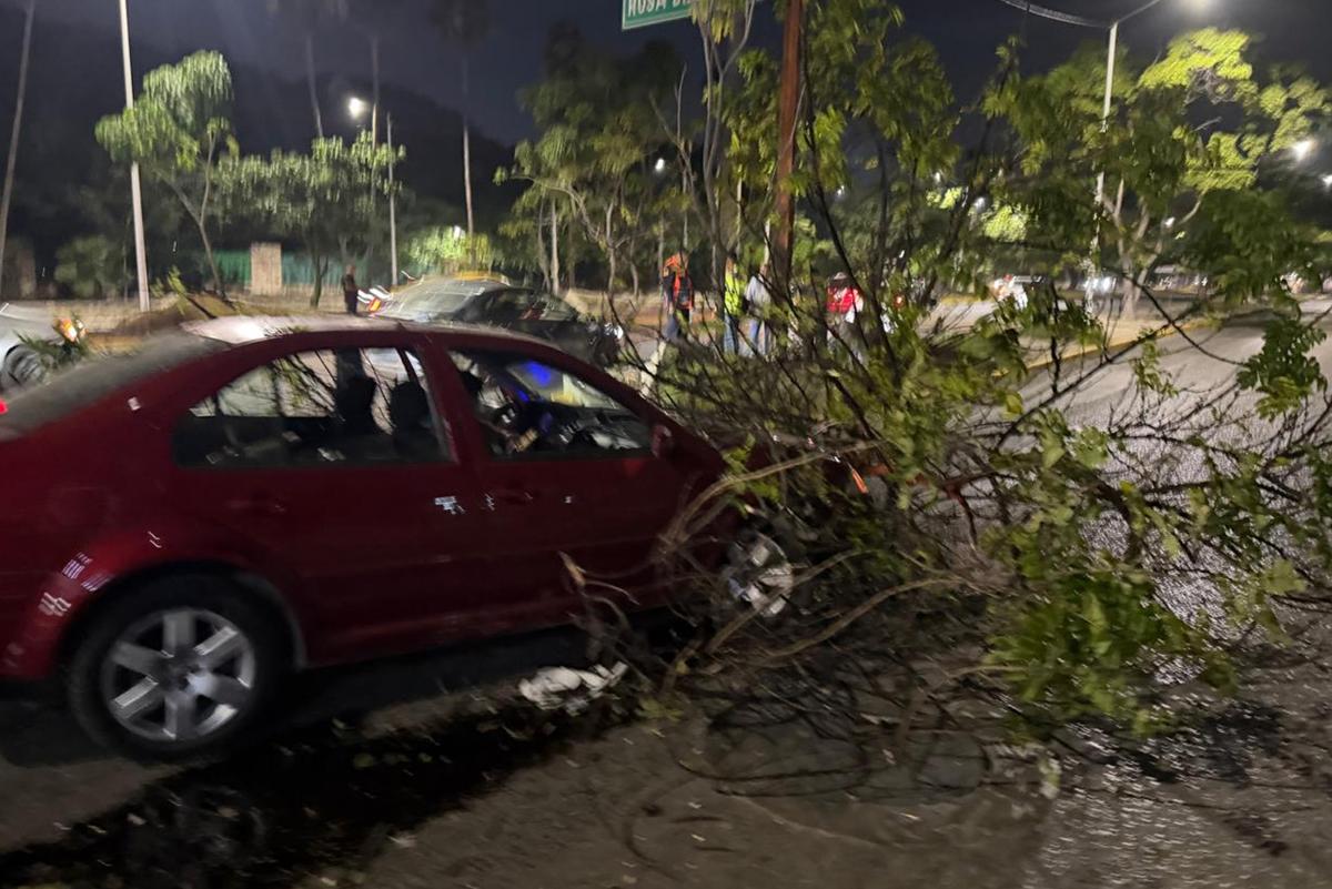 Derivado del fuerte golpe, el Jetta se proyectó hacia la derecha, subiéndose a la banqueta y chocando contra la base de un árbol, el cual fue arrancado de raíz. La unidad continuó su desplazamiento descontrolado hasta invadir el carril lateral.
