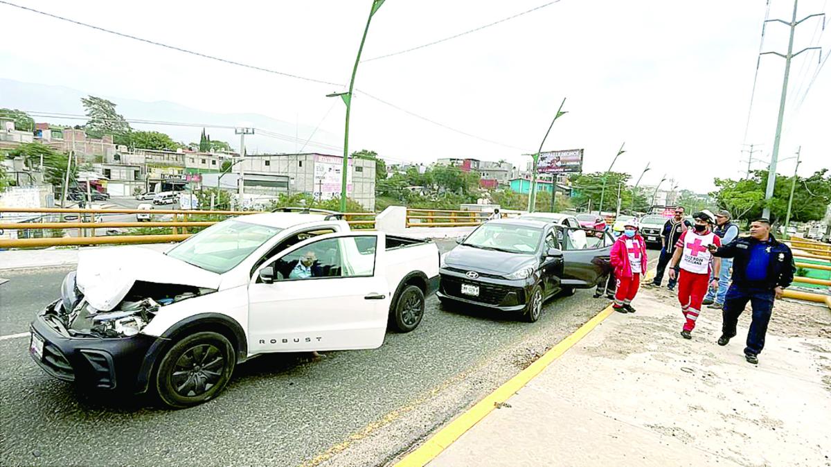 De acuerdo con los primeros informes, el percance ocurrió presuntamente debido a la detención repentina del flujo vehicular, lo que provocó que varios automóviles se impactaran por alcance. Entre las unidades involucradas se encuentran una camioneta de la marca Volkswagen, un vehículo sedán Hyundai, un automóvil Toyota y una unidad oficial de la Policía Estatal.