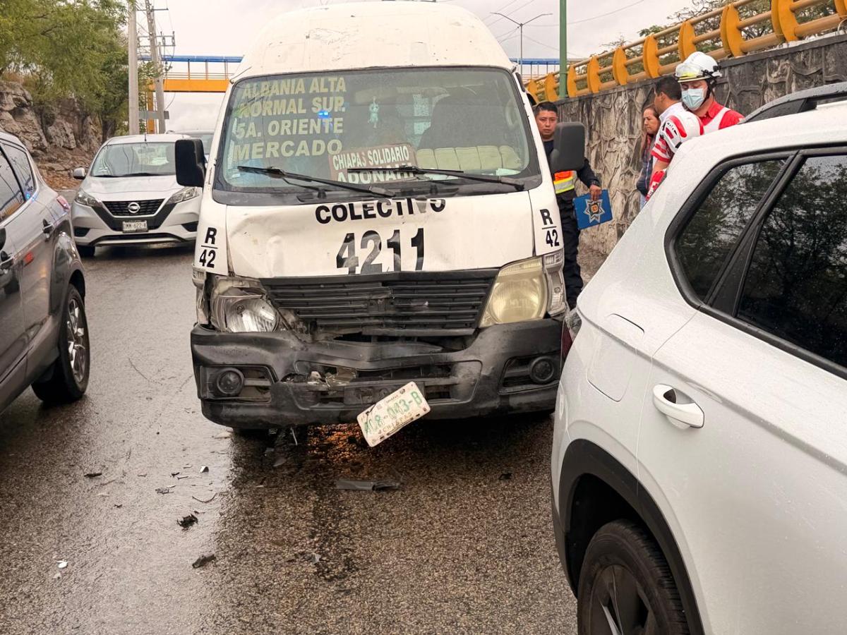 De acuerdo con los primeros reportes, el percance se originó cuando una unidad del transporte público tipo colectivo, correspondiente a la ruta 42, perdió el control por causas aún no esclarecidas mientras circulaba por el carril lateral en sentido de oriente a poniente, con dirección al cruce semaforizado de la avenida Central. Al no percatarse de la presencia de varios vehículos que se encontraban detenidos o avanzando lentamente, el conductor impactó una camioneta Taos de la marca Volkswagen.
