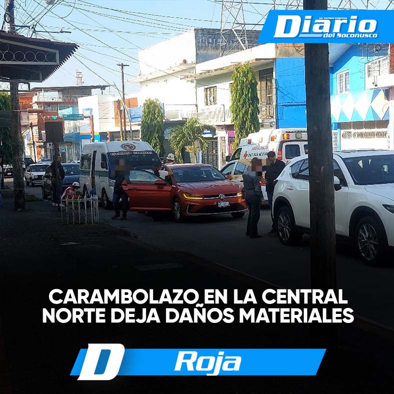 Un accidente vehicular tipo carambola se registró alrededor de las 8:10 de la mañana en la Central Avenida Norte de Tapachula, entre la 9ª Calle Oriente y el callejón Belisario Domínguez, dejando como saldo únicamente daños materiales.