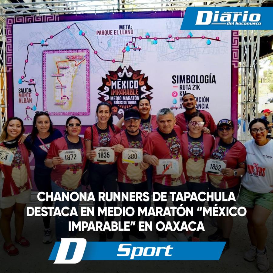 Un total de 12 integrantes del equipo Chanona Runners de Tapachula participaron en el medio maratón correspondiente a la tercera etapa del evento “México Imparable”, celebrado este fin de semana en el estado de Oaxaca.
