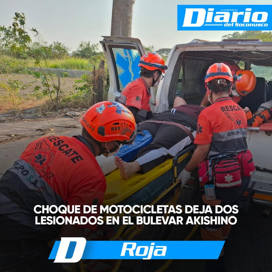 Un choque entre dos motocicletas dejó como saldo dos personas lesionadas y daños materiales sobre el bulevar Akishino, a la altura de un conocido restaurante familiar.