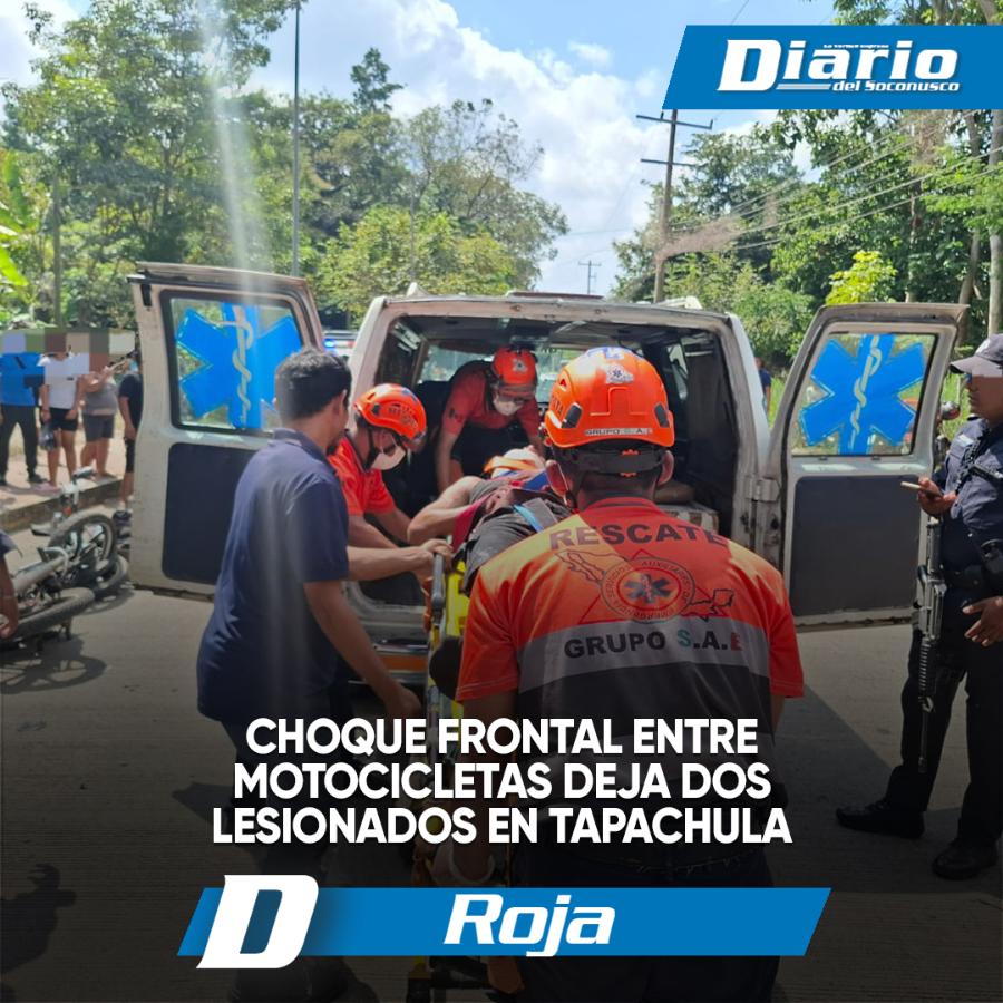 Choque frontal entre motocicletas deja dos lesionados en Tapachula