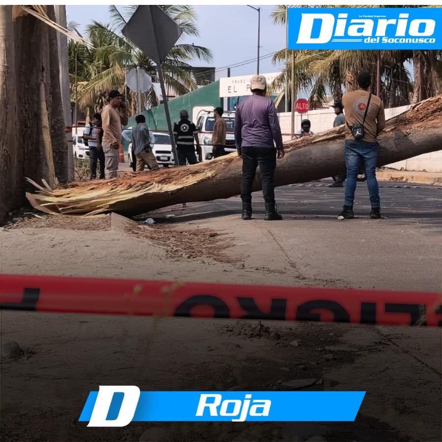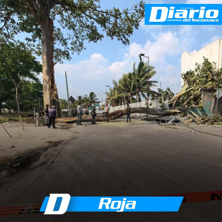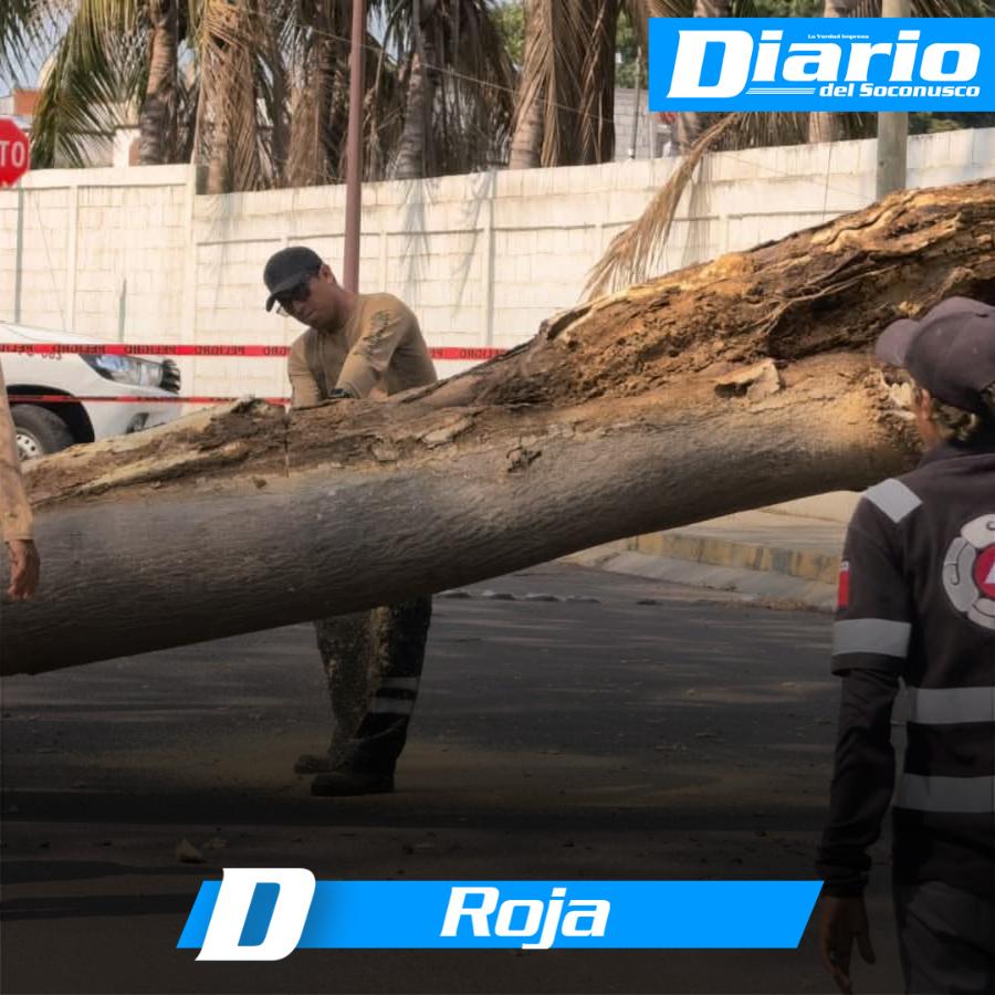 - Elementos de Protección Civil de Tapachula acudieron al lugar, donde procedieron a acordonar la zona para prevenir riesgos a la población y retirar los restos del árbol.