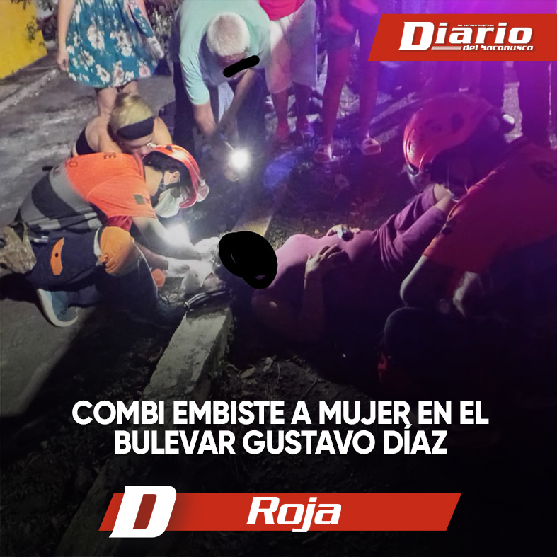 Una mujer resultó lesionada luego de ser embestida por una combi del transporte público sobre el bulevar Gustavo Díaz Ordaz, a la altura de la tienda Soriana, en Tapachula.