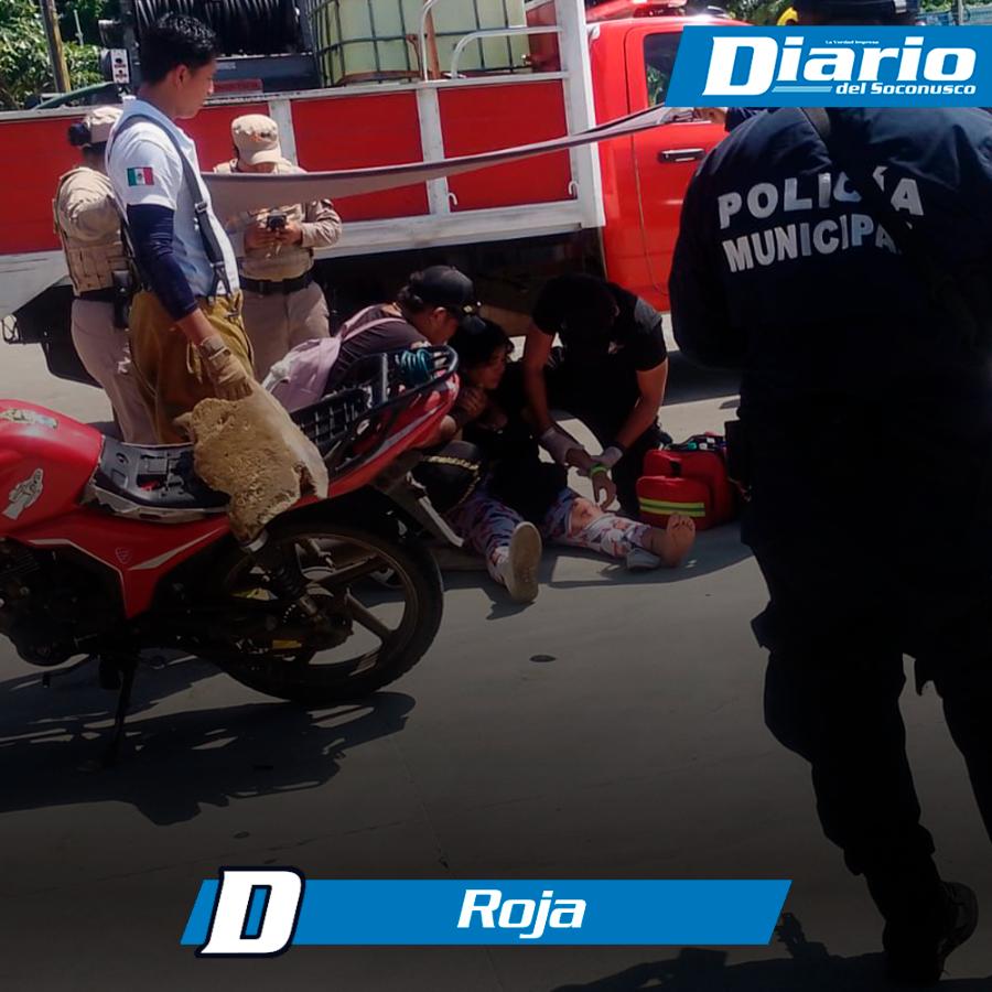 Mientras se atendía esta situación, en el área del estacionamiento se suscitó un accidente entre una motocicleta y un vehículo particular. Como resultado del impacto, una joven mujer que viajaba en la motocicleta resultó lesionada.